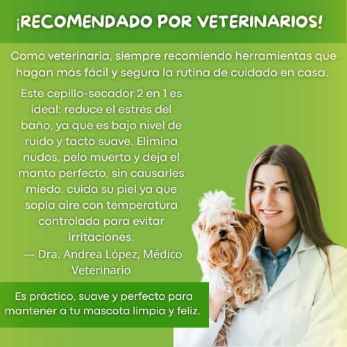 Mi perrita Luna se ponía nerviosa con el secador tradicional, pero con este cepillo 2 en 1 se relaja mientras la cepillo y seco al mismo tiempo. ¡Ahora el baño es rápido y sin drama!